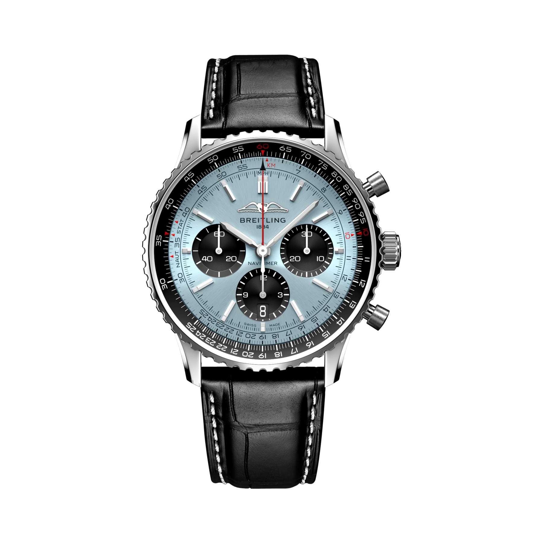 Der legendäre Fliegerchronograph von Breitling – für die Reise. Im Jahr 1952 entwickelt Willy Breitling einen Chronographen mit einem kreisförmigen Rechenschieber, mit dem Piloten alle notwendigen Flugberechnungen durchführen können. Zwei Jahre später macht die renommierte amerikanische Vereinigung AOPA (Aircraft Owners and Pilots Association) diese Ausführung zu ihrem offiziellen Zeitmesser. Die «Navigation Timer» – oder Navitimer – ist geboren. Die AOPA ist und bleibt der grösste Pilotenverein der Welt und zählt fast jeden US-Piloten zu ihren Mitgliedern. Als De-facto-Fliegeruhr während der glorreichen Ära der zivilen Luftfahrt wurde die Navitimer von Piloten und Flugbegeisterten gleichermassen getragen. 1962 schaffte sie es am Handgelenk des Astronauten Scott Carpenter sogar ins Weltall. Doch nicht nur Piloten waren von der unbändigen Ästhetik der Uhr beeindruckt. Berühmtheiten wie Miles Davis oder Serge Gainsbourg gehörten ebenfalls zu ihren Fans und bewiesen damit, dass die Navitimer nicht nur stilvoll, sondern auch funktional war. Seit ihrer Markteinfürung vor 70 Jahren wurden diverse Modelle dieser Breitling Ikone lanciert, doch diese neue Navitimer überzeugt mit ihren klassischen Eigenschaften, die mithilfe moderner Verbesserungen noch verfeinert wurden. Ein abgeflachter Rechenschieber und ein gewölbtes Glas schaffen den Eindruck eines schlankeren Profils. Der Wechsel von polierten und gebürsteten Metallelementen sorgt für ein schimmerndes und dennoch dezentes Aussehen. Es sind vor allem die neuen Farben in Blau-, Grün- und Kupfertönen, die die aktualisierten Zifferblattoptionen definieren. Und wenn es eine Neuerung gibt, die für Nostalgie sorgen wird, sind es die AOPA-Flügel, die nun wieder dort sind, wo sie ursprünglich waren – bei 12 Uhr. Seit bereits 70 Jahren erfreut sich die Original-Fliegeruhr grosser Beliebtheit bei Piloten und Trendsettern gleichermassen. Getragen von Astronauten im Weltraum und von den grössten Stars der Welt, handelt es sich um den legendärsten Zeitmesser von Breitling und um eine der unverwechselbarsten Uhren aller Zeiten.