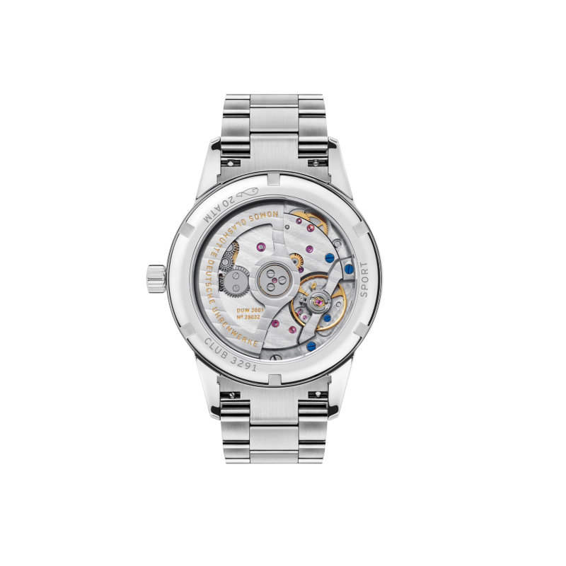 Club Sport neomatik in Petrolgrün hat einen Gehäusedurchmesser von 37 Millimetern – die Automatikuhr mit dem aufwendigen Strahlenschliff glänzt damit an jedem Handgelenk. In motivierender Sportlichkeit begleitet sie durch den bewegten Alltag. Angetrieben wird das leistungsstarke Modell von DUW 3001, dem innovativen Manufakturkaliber von NOMOS Glashütte. Das bei NOMOS entwickelte und gefertigte Uhrwerk ist nur 3,2 Millimeter hoch und für beste Ganggenauigkeit mit dem NOMOS-Swing-System ausgestattet. Wer, vom Schreibtisch kommend, beim Sprung in den Pool keine Zeit verlieren will, ist mit dieser Uhr gut beraten, denn Club Sport neomatik petrol ist bis 20 atm wasserdicht und bleibt beim Schwimmen einfach am Handgelenk.