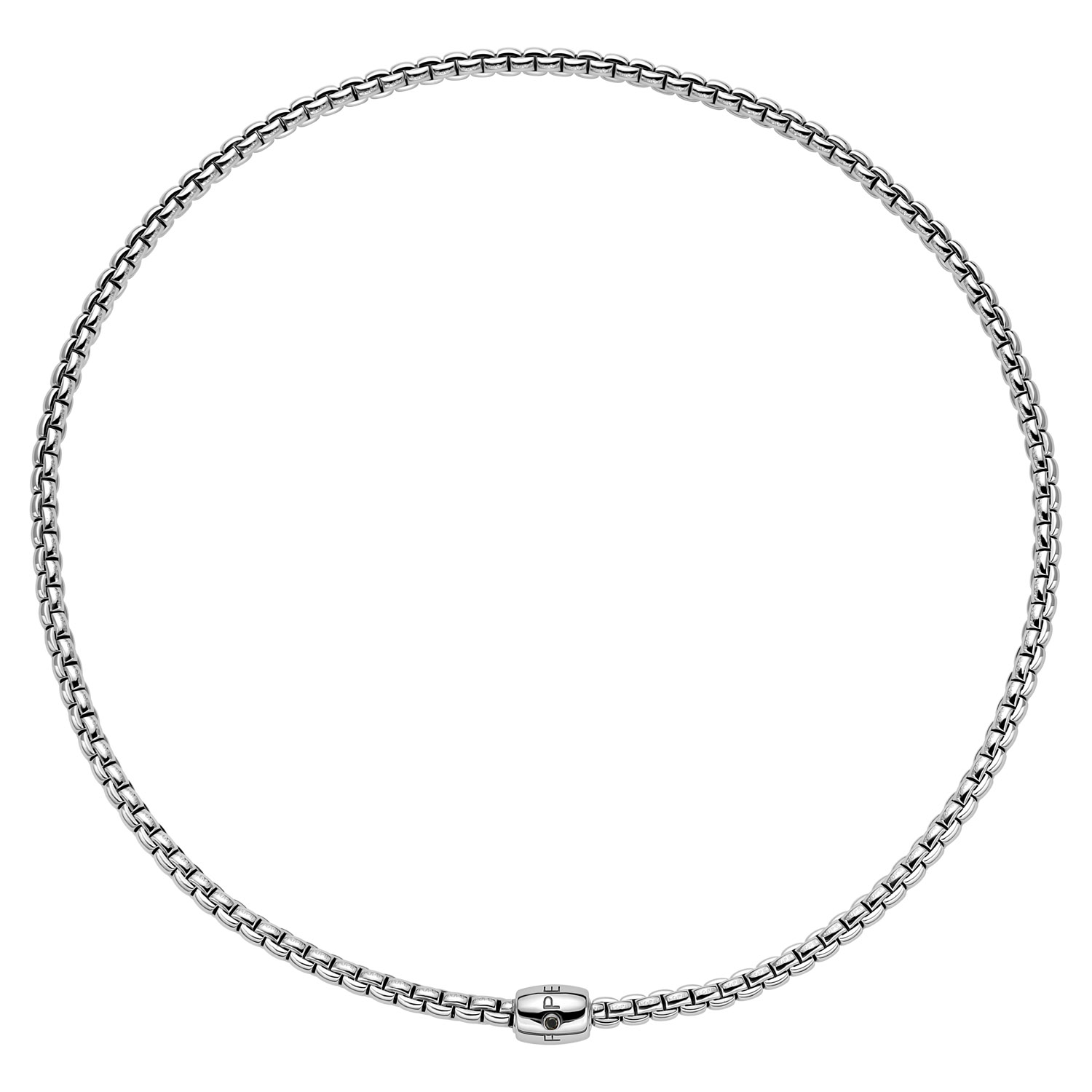 Flexible Halskette komplett aus 18 Karat Gold (Eka-Geflecht, erste Dicke) mit Druckknopfverschluss, verziert mit einem schwarzen Diamanten