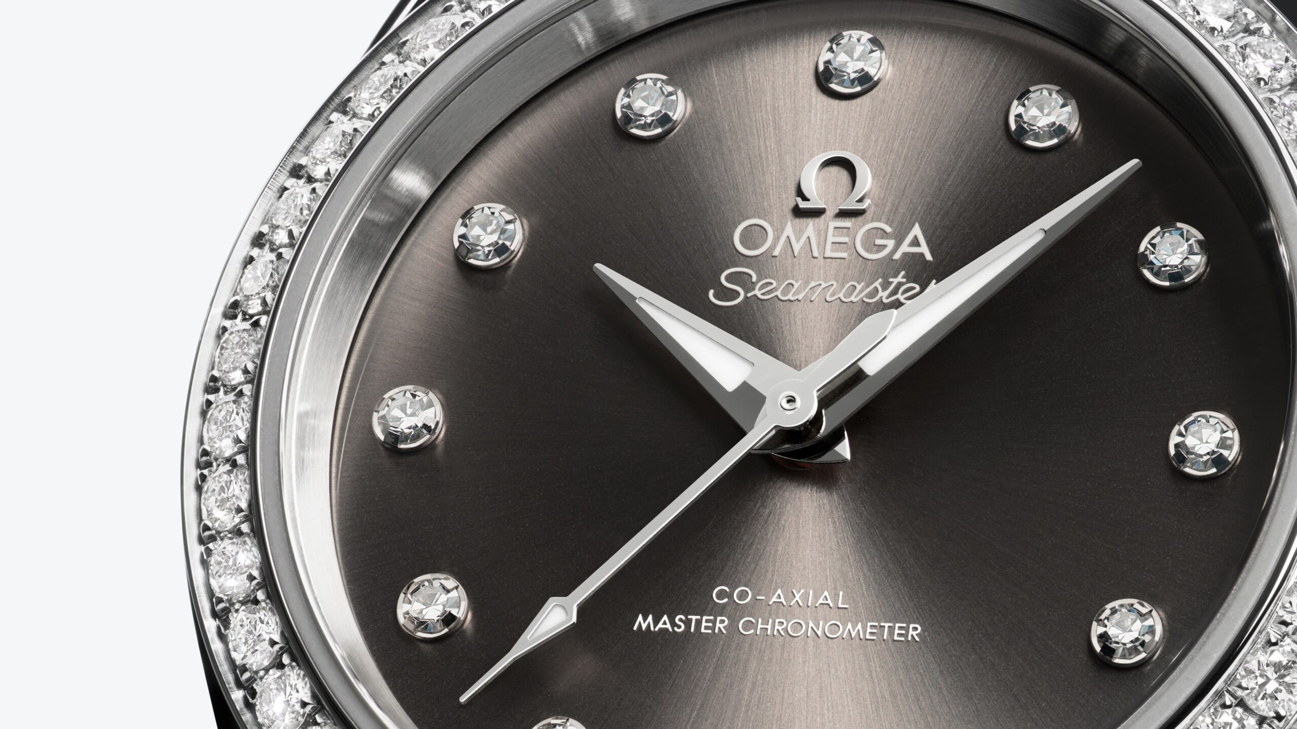 Die Seamaster Aqua Terra ist eine Hommage an OMEGAs großes maritimes Erbe. Seine zarten Proportionen hat das schlanke 30-mm-Gehäuse dieser Uhr dem innovativen OMEGA Co-Axial Master Chronometer Kaliber 8750 zu verdanken, das vom Eidgenössischen Institut für Metrologie (METAS) nach den höchsten Standards der Branche zertifiziert wurde.