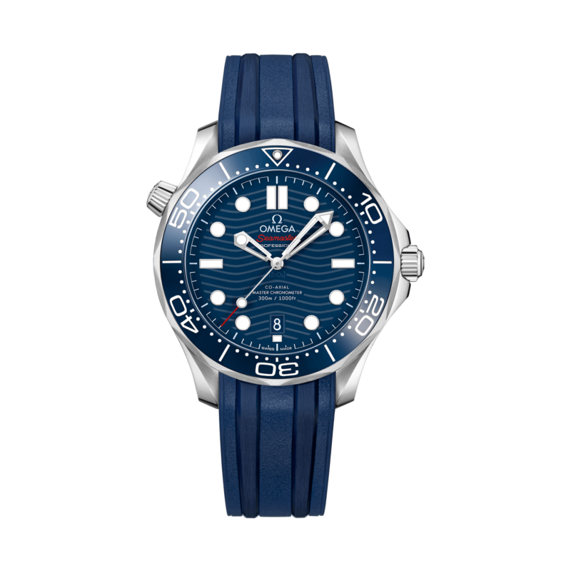Angetrieben wird die Uhr mit blauem Kautschukarmband vom OMEGA Master Chronometer-Kaliber 8800, das durch das Saphirglas des Gehäusebodens mit gewelltem Rand bewundert werden kann.