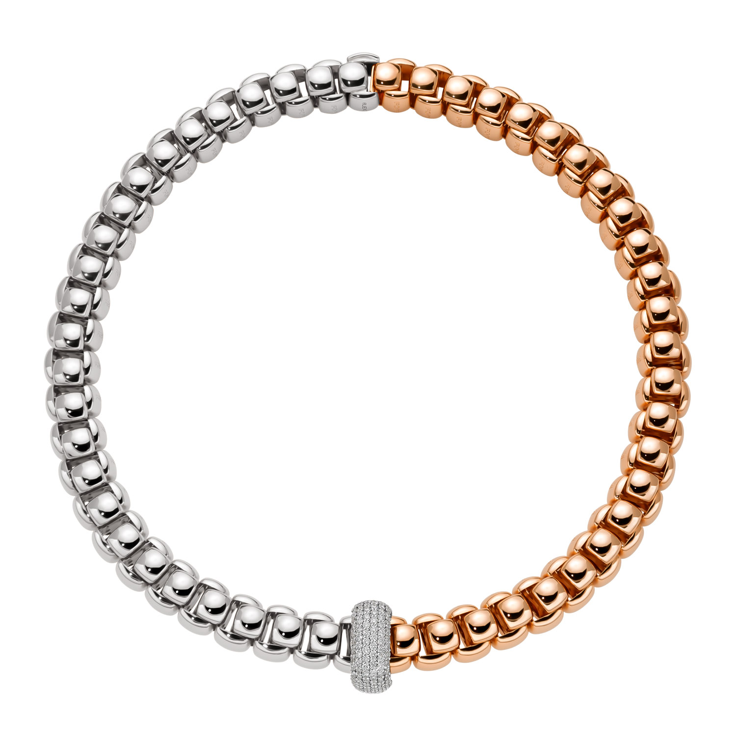 Flexible zweifarbige Halskette aus 18 Karat Gold mit PAVE Diamanten. Verschlusshaken im Geflecht versteckt
